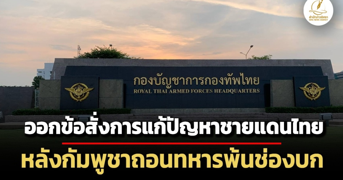 กองทัพไทยออกข้อสั่งการให้ศูนย์ฯแก้ไขปัญหาชายแดนแก้ไขปัญหาด้านอาชญากรรมข้ามชาติ ควบคุมจุดผ่านแดน มาตรการป้องกันค้ามนุษย์ ปัญหาอาชญากรรมข้ามชาติ หลังทหารกัมพูชาแจ้งกองกำลังสุรนารีเจรจาถอนทหารพ้นช่องบก