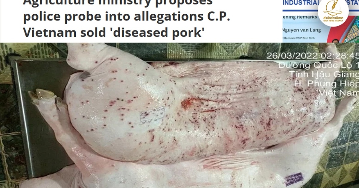 สำนักข่าวอิศรา (www.isranews.org) รายงานข่าวว่าเมื่อสัปดาห์ที่ผ่านมา กระทรวงเกษตรและสิ่งแวดล้อมของเวียดนามได้มีการยื่นคำร้องขอไปยังกระทรวงความมั่นคงสาธารณะ เพื่อขอให้มีการสอบสวนในประเด็นที่เป็นกระแสบนโซเชียลมีเดียที่อ้างว่าบริษัทซีพีเวียดนามหรือ C.P.Vietnam บริษัทในเครือเจริญโภคภัณฑ์จำหน่ายเนื้อหมูที่เป็นโรค