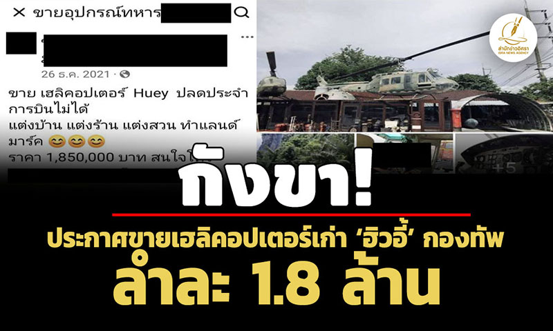 อ่านประกอบ : กังขา! ประกาศขายเฮลิคอปเตอร์เก่ากองทัพ ลำละ 1.8 ล. – เจ้าของเพจแจงประมูลมาถูกต้อง
