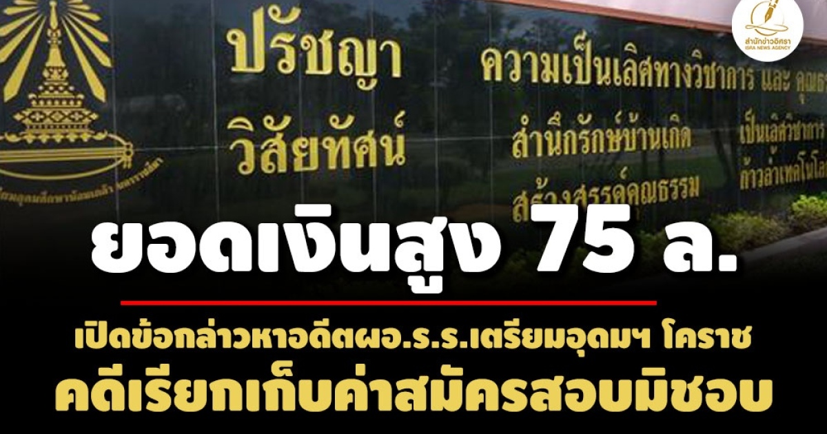 • ยอดเงินสูง 75 ล.! เปิดข้อกล่าวหาอดีตผอ.ร.ร.เตรียมอุดมฯโคราช คดีเรียกเก็บค่าสมัครสอบมิชอบ