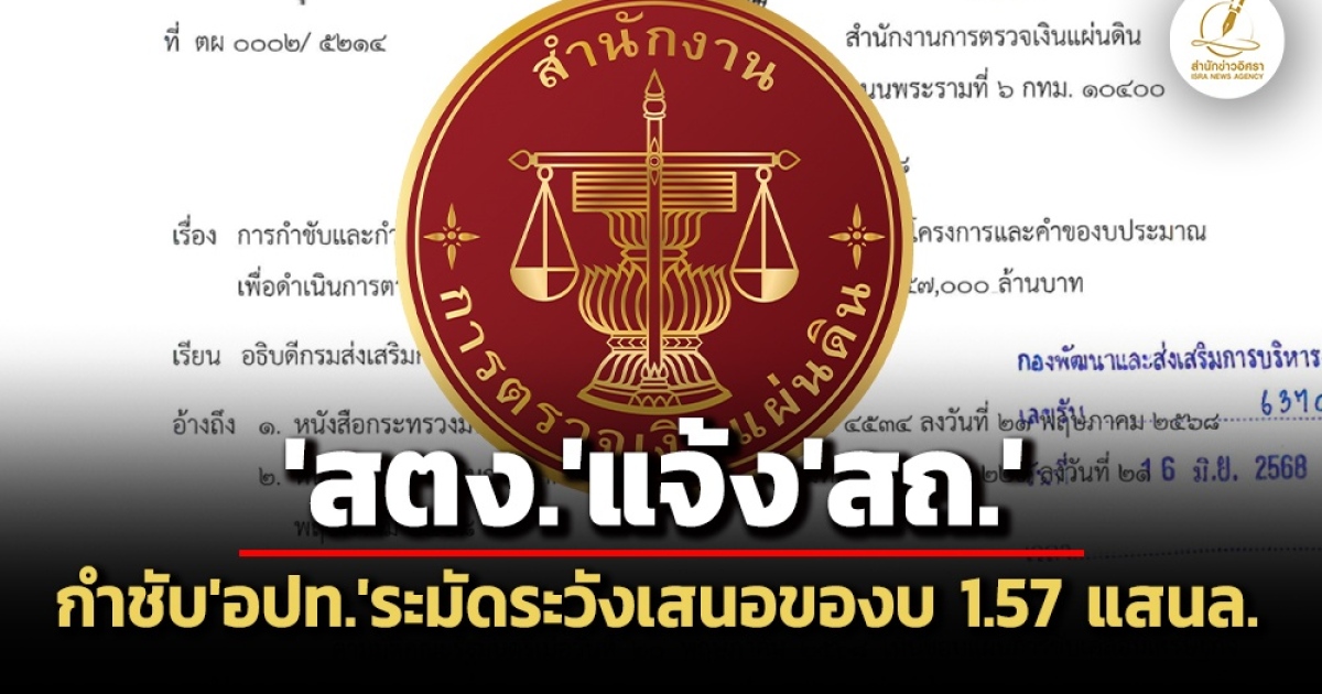 สำนักข่าวอิศรา (www.isranews.org) รายงานว่า สำนักงานการตรวจเงินแผ่นดิน (สตง.) โดยนายมณเฑียร เจริญผล ผู้ว่าการตรวจเงินแผ่นดิน ได้ทำหนังสือ สตง. ด่วนที่สุด ตผ 0002/5214 เรื่อง การกำชับและกำกับดูแลองค์กรปกครองส่วนท้องถิ่นเกี่ยวกับการเสนอโครงการและคำของบประมาณเพื่อดำเนินการตามแผนการขับเคลื่อนเศรษฐกิจภายใต้กรอบวงเงิน 157,000 ล้านบาท ลงวันที่ 16 มิ.ย.2568 แจ้งไปยังอธิบดีกรมส่งเสริมการปกครองท้องถิ่น (สถ.)