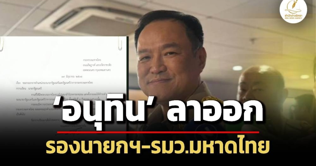 ‘อนุทิน’ เซ็นใบลาออกจากตำแหน่งรองนายกฯและรมว.มหาดไทยแล้ว มีผลทันที