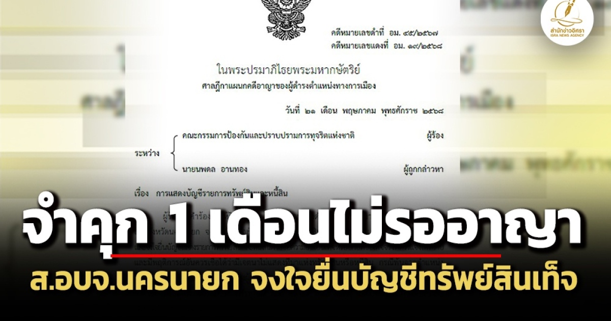 - ศาลฎีกาฯสั่งจำคุก 1 เดือน -รอลงโทษ รองนายกเทศฯ ต.โพธิ์ชัย ร้อยเอ็ด ยื่นบัญชีฯเท็จ