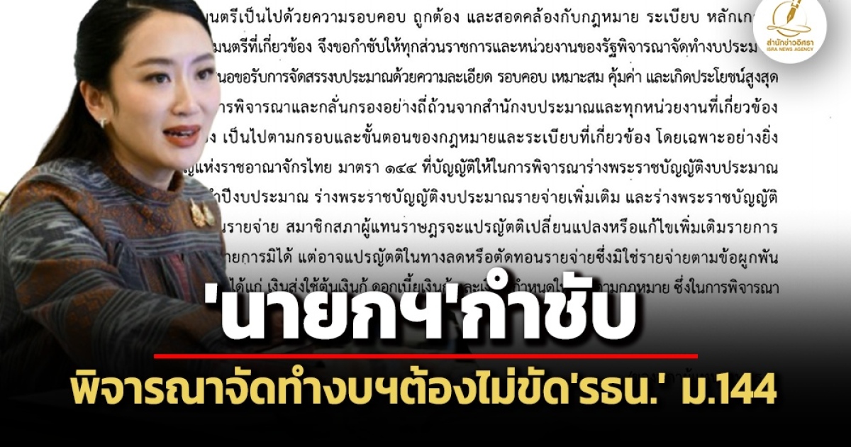 ‘นายกฯ’ กำชับ ‘ส่วนราชการ-หน่วยงานรัฐ’ พิจารณาจัดทำ ‘ร่าง พ.ร.บ.งบปี 69-งบกระตุ้น 1.57 แสนล้าน-ของบกลางฯ’ ต้อง ‘ละเอียด-รอบคอบ-เหมาะสม’ ไม่ขัดรัฐธรรมนูญ ม. 144