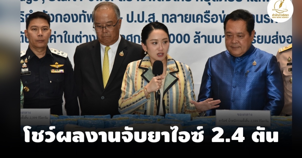 'แพทองธาร ชินวัตร' นายกรัฐมนตรี แถลงโชว์ผลงานจับยาไอซ์ 2.4 ตัน มูลค่ากว่า 3,000 ล้านบาท ย้ำจุดยืนรัฐบาลต้านยาเสพติด