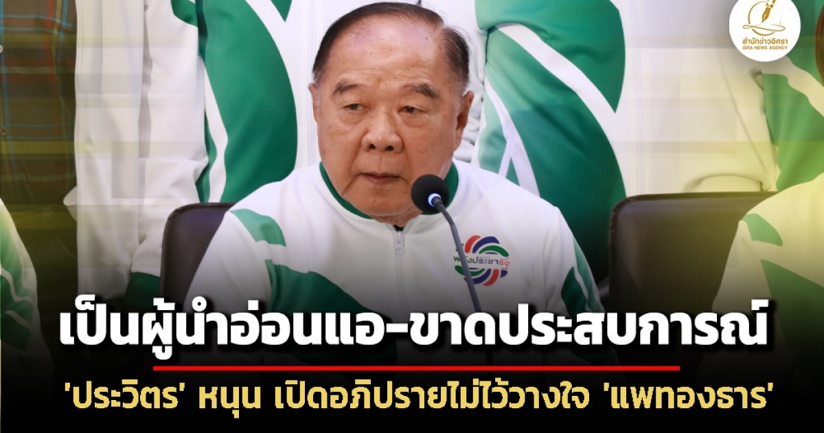 ไพบูลย์ นิติตะวัน เลขาธิการพรรคพลังประชารัฐ เผย พล.อ.ประวิตร วงษ์สุวรรณ หัวหน้าพรรค พปชร. ประกาศร่วมลงชื่อยื่นอภิปรายไม่ไว้วางใจ แพทองธาร ชินวัตร ชี้ ใช้อำนาจผู้นำรัฐบาล นำพาประเทศเข้าสู่ความเสี่ยงเสียอธิปไตย เป็นผู้นำที่มีความอ่อนแอ และขาดประสบการณ์การเจรจาระหว่างประเทศ