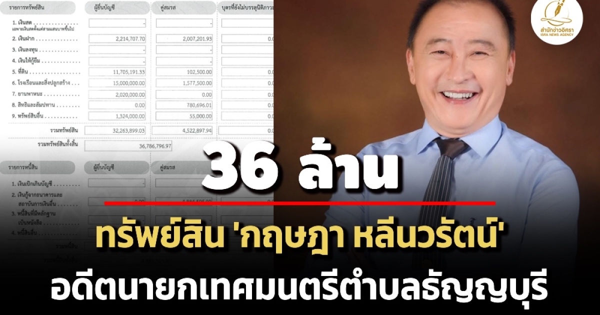 ป.ป.ช. เปิดทรัพย์สินองค์กรปกครองส่วนท้องถิ่น 'กฤษฎา หลีนวรัตน์' อดีตนายกเทศมนตรีตำบลธัญญบุรี ทรัพย์สิน 36 ล. ที่ดิน 11 ล.-พ่อ ‘พีชBMW’-เจ้าของวลี ‘คนธัญบุรีกินหญ้าหวาน’