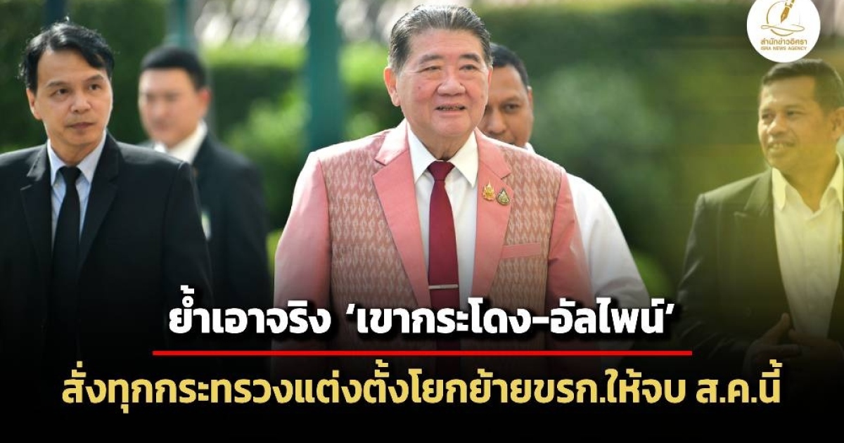 'ภูมิธรรม' ย้ำเอาจริงทุกเรื่อง ‘อัลไพน์-เขากระโดง’ ชี้ยังไม่ขีดเส้นกลัวกดดัน ส่วนการฟ้องนายแปลงโยนถามคนอื่น ส่วนการแจ่งตั้งโยกย้ายข้าราชการ ‘มหาดไทย’ ยังนิ่ง แต่ไม่ได้หมายความว่าจะไม่ย้าย ก่อนเผยได้กำชับทุกกระทรวงให้เร่งรัดการแต่งตั้งโยกย้าย โดยขอให้ทำให้เสร็จภายในกลางเดือน ส.ค.นี้