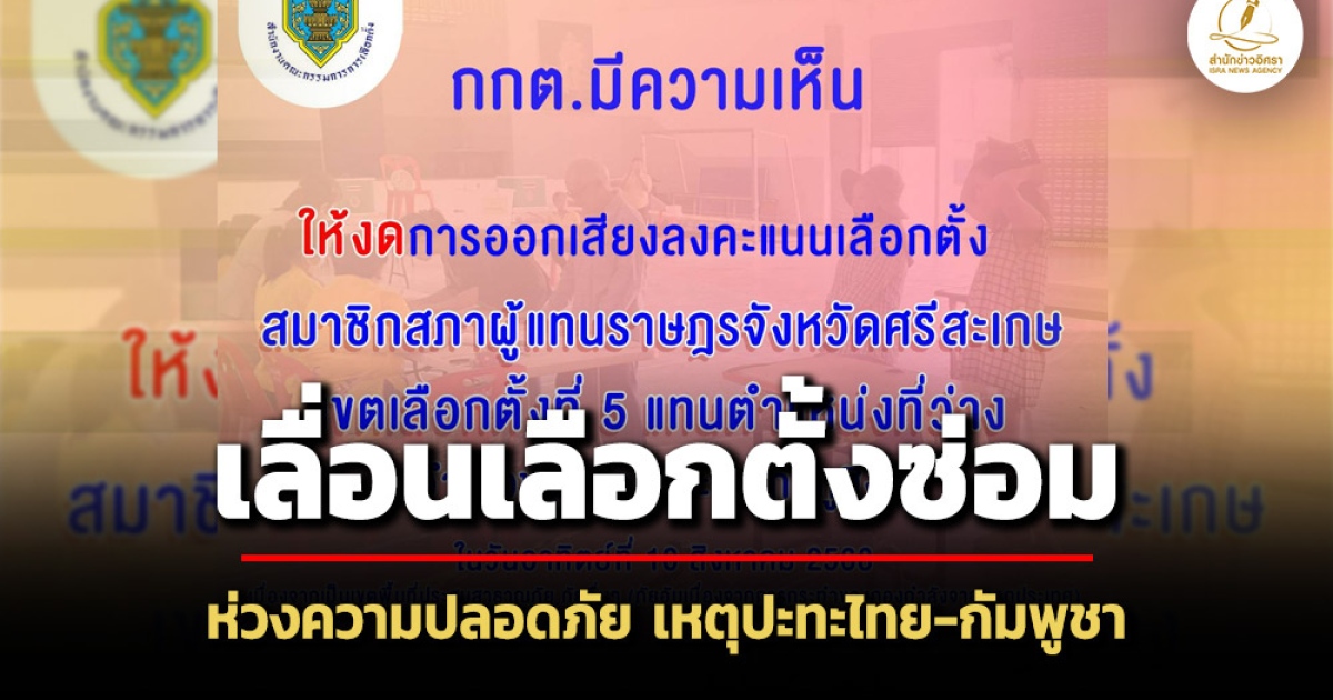 กกต.สั่งงดออกเสียงลงคะแนน เลือกตั้งซ่อม ส.ส. ศรีสะเกษ 10 ส.ค.ออกไปไม่มีกำหนด ห่วงความปลอดภัย เหตุปะทะชายแดนไทย-กัมพูชา