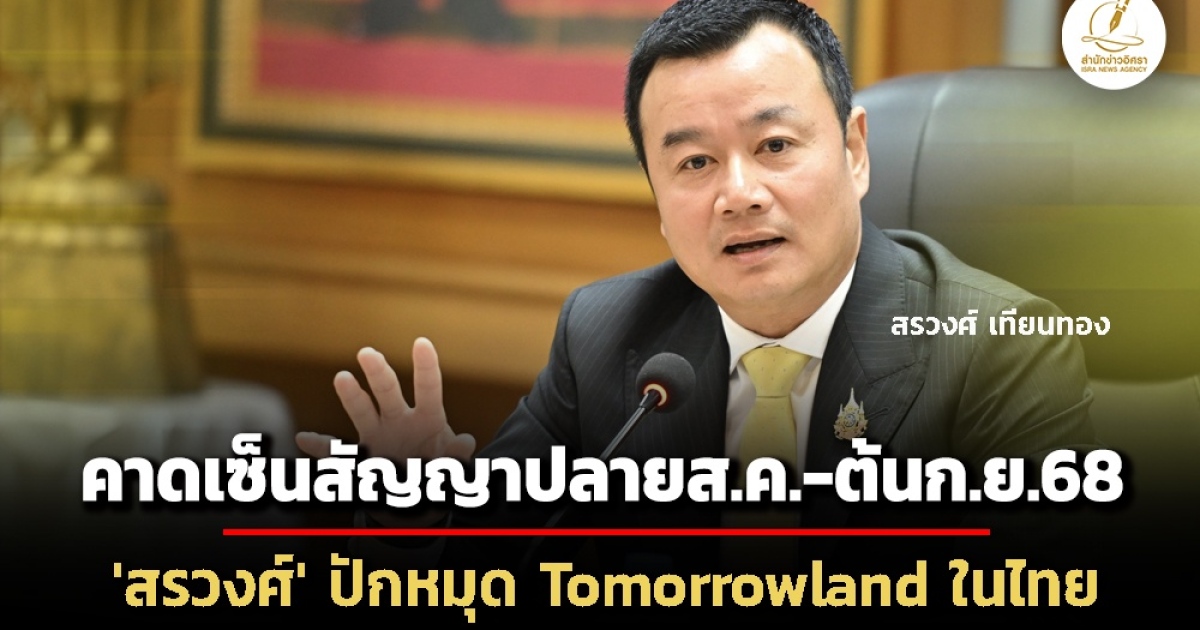สรวงศ์ เทียนทอง รมว.ท่องเที่ยวและกีฬา เตรียมเสนอคณะรัฐมนตรีอนุมัติงบประมาณจัดงานเทศกาลดนตรี Tomorrowland ในประเทศไทย เผย บริษัท วัน เอเชีย เวนเจอร์ส จำกัด เสนอตัว-ร่วมทุน บริษัท Tomorrowland International เจ้าของลิขสิทธิ์ อยู่ระหว่างจดจัดตั้ง บริษัท วี อาร์ วัน.เวิลด์ (ไทยแลนด์) เพื่อดำเนินงานในไทย คาด เซ็นสัญญาปลายเดือนสิงหาคม-ต้นเดือนกันยายน 68