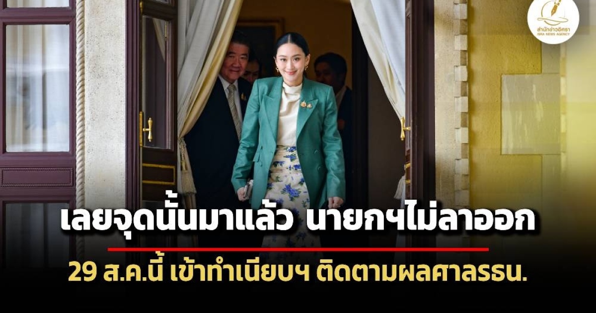 จับตา 29 ส.ค.นี้ ‘แพทองธาร’ เข้าทำเนียบฯติดตามผลการพิจารณาของศาลรัฐธรรมนูญ กรณีคลิปเสียงฮุนเซน ยืนยันไม่ลาออก เพราะส่งคำแถลงปิดคดีไปแล้ว