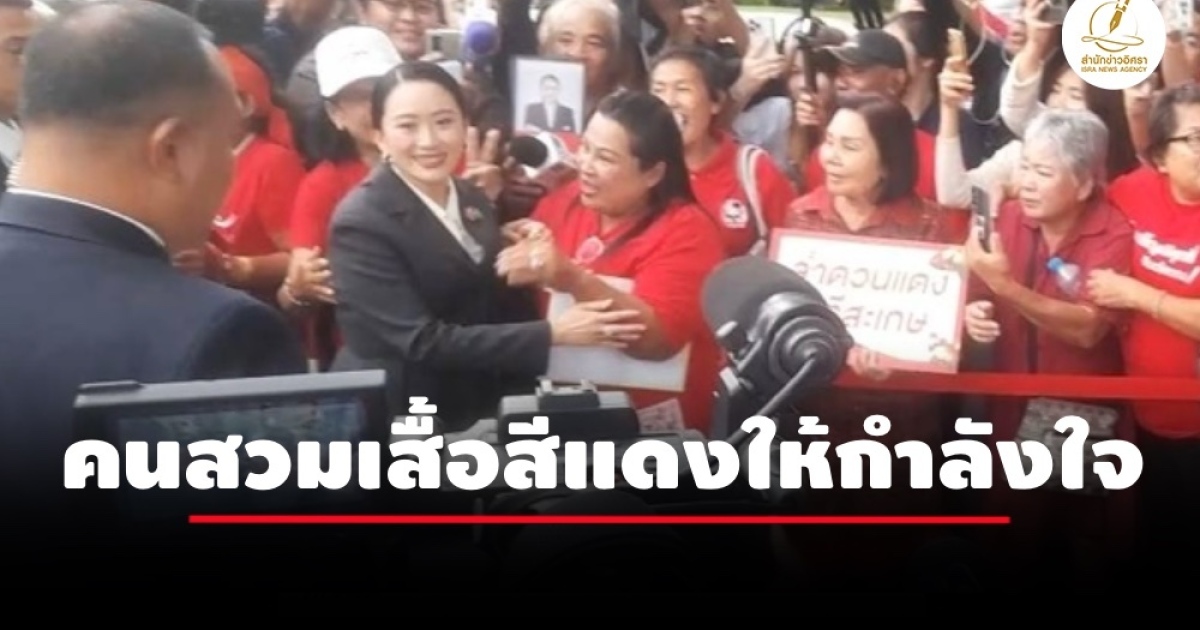 • กลุ่มคนสวมเสื้อแดงรอต้อนรับ 'แพทองธาร' หลังศาลรธน.ลงมติให้สิ้นสุดความเป็นนายกฯ