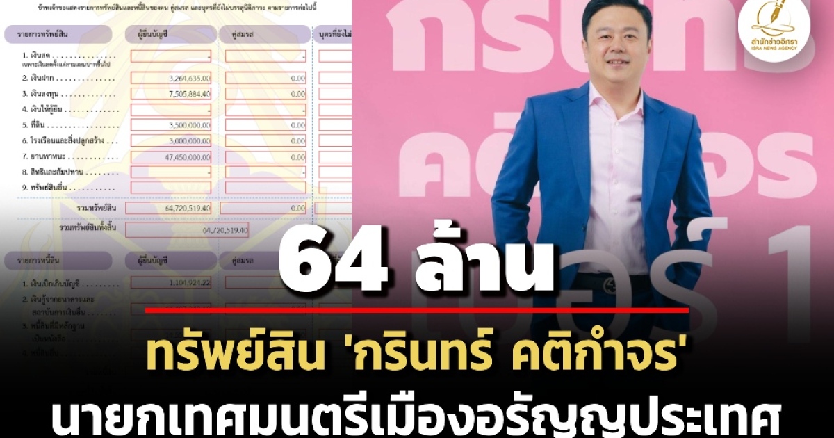 สำนักข่าวอิศรา (www.iranews.org) รายงานว่า เมื่อเร็ว ๆ นี้ สำนักงานคณะกรรมการการป้องกันและปราบการทุจริตแห่งชาติ (ป.ป.ช.) เปิดเผยบัญชีแสดงรายการทรัพย์สินและหนี้สินองค์กรปกครองส่วนท้องถิ่น ราย นายกรินทร์ คติกำจร นายกเทศมนตรีเมืองอรัญญประเทศ จังหวัดสระแก้ว กรณีเข้ารับตำแหน่ง เมื่อวันที่ 6 มิ.ย. 2568