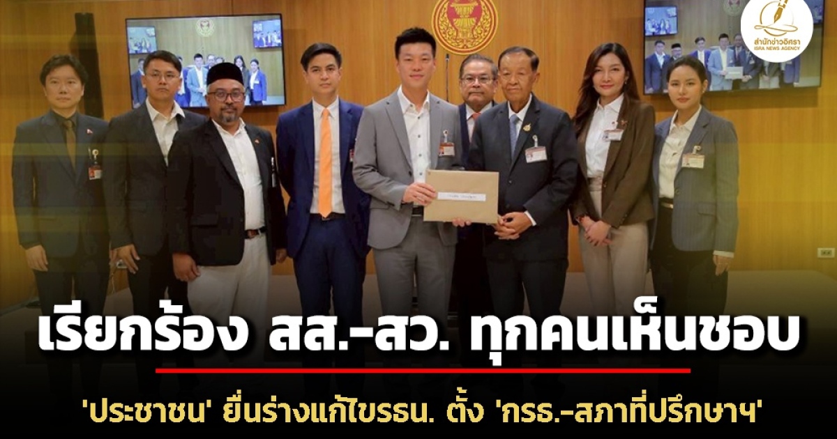 พรรคประชาชน ยื่นร่างแก้ไขรัฐธรรมนูญหมวด 15/1 เสนอโมเดล 2 กลไกคู่ขนาน จัดทำร่างรัฐธรรมนูญฉบับใหม่ คณะกรรมาธิการยกร่างรัฐธรรมนูญ 35 คน - สภาที่ปรึกษาการยกร่างรัฐธรรมนูญ 100 คน ยึดโยงประชาชน เรียกร้อง สส.-สว. ทุกคน เห็นชอบ วางไทม์ไลน์ ม.ค.69 เคาะวันประชามติพร้อมเลือกตั้ง