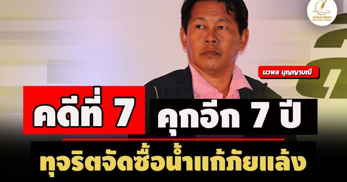 ศาลอาญาคดีทุจริตประพฤติมิชอบภาค 9 พิพากษาคดีที่ 7 'นวพล บุญญามณี' อดีตนายก อบจ.สงขลา โดนโทษจำคุกเพิ่มอีก 7 ปี คราวนี้ทุจริตจัดซื้อน้ำแก้ภัยแล้ง ปี 51 วงเงิน 10 ล้าน, ปลัด อบจ.-หัวหน้าสำนักปลัด โดนด้วย คนละ 6 ปี 8 เดือน