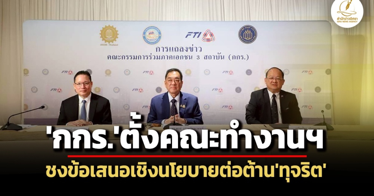 โดยคณะทำงานดังกล่าว ประกอบด้วย สภาหอการค้าแห่งประเทศไทย สภาอุตสาหกรรมแห่งประเทศไทย และสมาคมธนาคารไทย พร้อมด้วยภาคีเครือข่ายที่เข้ามาร่วมผลักดัน ได้แก่ องค์กรต่อต้านคอร์รัปชัน (ประเทศไทย) หรือ ACT, แนวร่วมปฏิบัติของภาคเอกชนไทยในการต่อต้านการทุจริต (CAC) และสำนักงานคณะกรรมการป้องกันและปราบปรามการทุจริตในภาครัฐ (ป.ป.ท.)