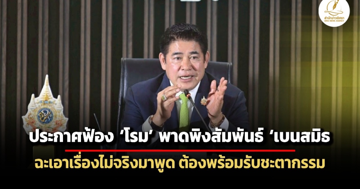 ‘ธรรมนัส’ ประกาศฟ้อง ‘โรม’ หลังอภิปรายพาดพิงความสัมพันธ์ ‘เบนสมิธ’ ถามกลับสื่อรู้เรื่องหรือว่านักธุรกิจเมืองนอกทำอะไรผิด เตือนขยายข่าวมั่วระวังเดือดร้อน ชี้ถ้ากล้าสู้ ก็ต้องไปพะเยา