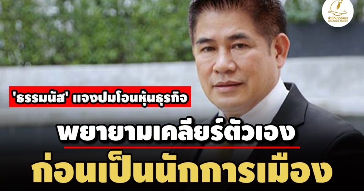เป็นทางการ! 'ธรรมนัส พรหมเผ่า' แจง 'อิศรา' ปมโอนหุ้นธุรกิจ บ.รักษาความปลอดภัย โรงแรม ขายหวย ให้ลูกน้อง คนใกล้ชิด หลังตามข่าวเจาะลึกมาตั้งแต่ปี 62 เจ้าตัวยันถือแค่ 5% พยายามเคลียร์ตัวเองก่อนเป็นนักการเมือง หุ้นบางตัวไม่เคยประกอบธุรกิจ เอาไปตีข่าวเป็นเรื่องเป็นราว ส่วนตลาดคลองเตยศาลปกครองชี้แล้วไม่ใช่สัมปทาน ที่ผ่านมาชี้แจง ป.ป.ช.หมดแล้ว มั่นใจในความบริสุทธิ์