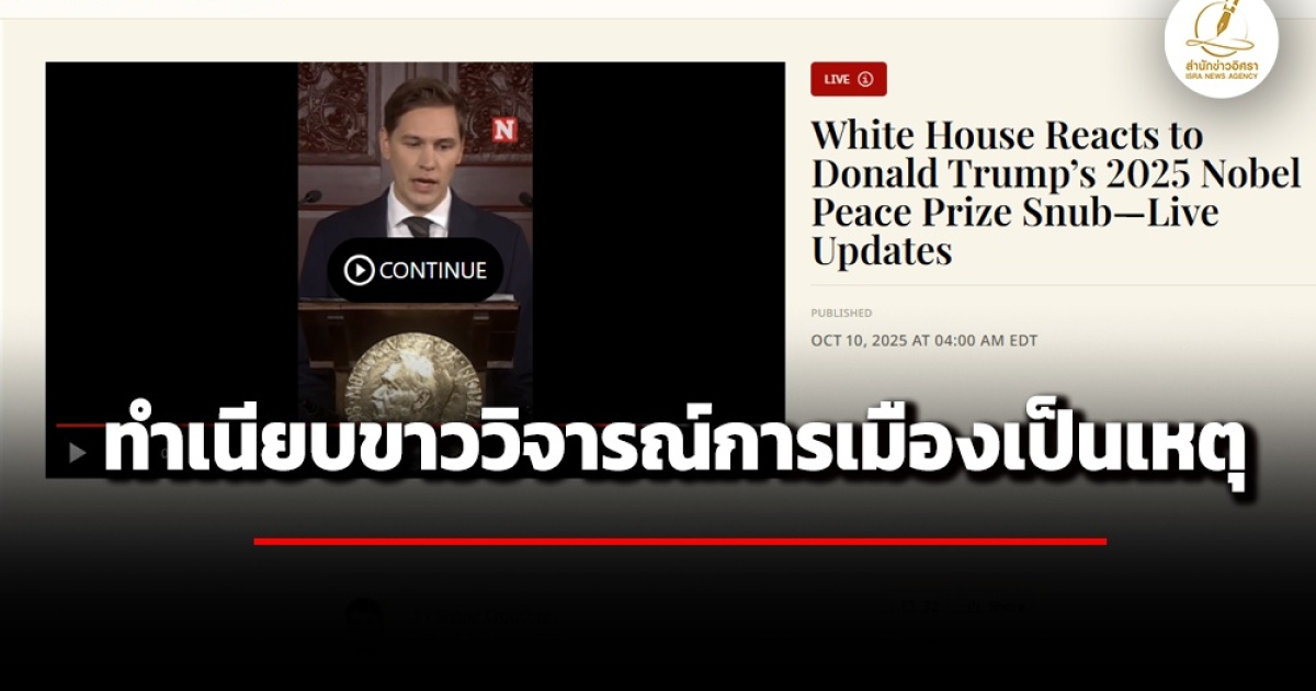 ทำเนียบขาววิจารณ์ กก.โนเบลให้ความสำคัญกับการเมืองมากกว่าสันติภาพ หลัง ‘ทรัมป์’ ชวดรางวัลโนเบลสันติภาพ ขณะนักวิชาการอังกฤษชี้ กก.โนเบลตัดสินใจฉลาด มอบรางวัลให้ฝ่ายค้านเวเนฯ เพราะสื่อสารแสดงจุดยืนไม่เอาเผด็จการ หนุน ปชต.