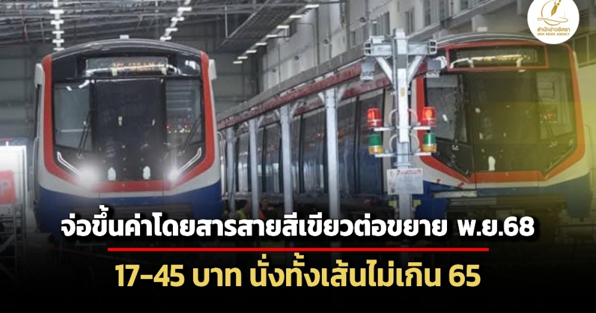 @ขึ้นค่าโดยสารส่วนต่อขยาย 1-2 เริ่มต้น 17-45 บาท ค่าโดยสารสูงสุดไม่เกิน 65 บาท เริ่มพ.ย.นี้