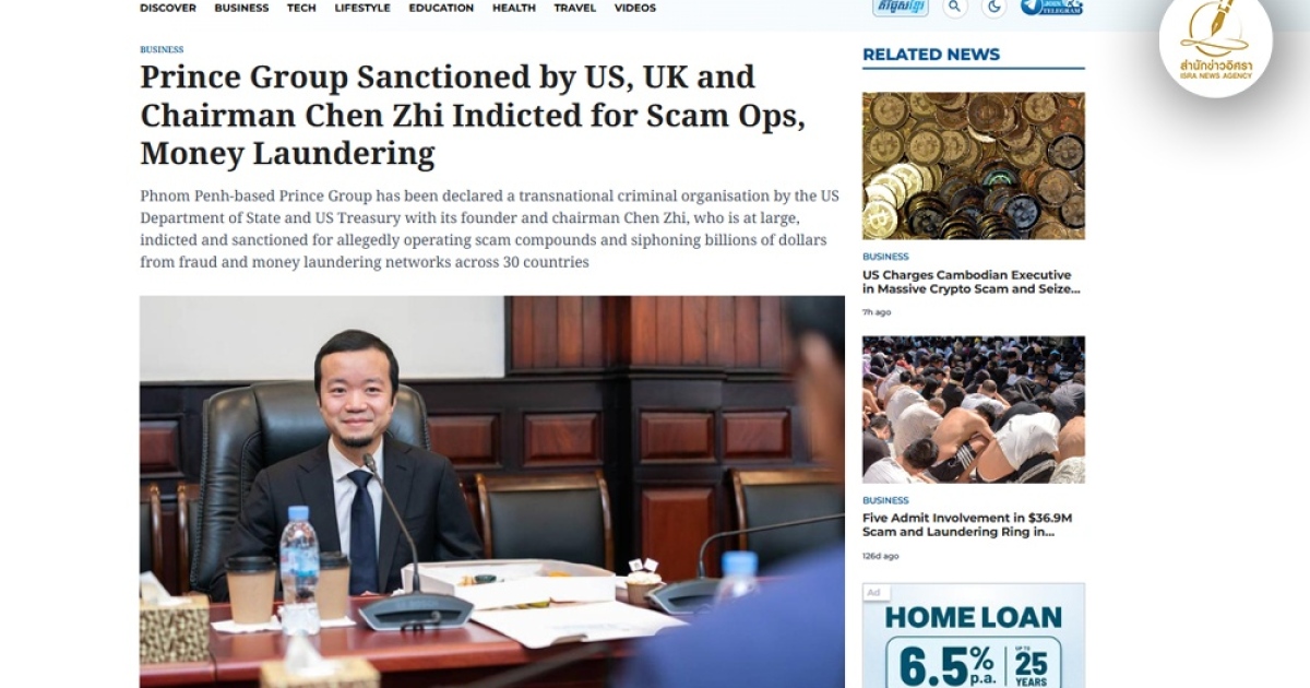 สำนักข่าวอิศรา (www.isranews.org) รายงานข่าวความเคลื่อนไหวของสหรัฐอเมริกาเกี่ยวกับการปราบปรามกลุ่มสแกมเมอร์ว่าสำนักข่าว Kiripost ของกัมพูชารายงานข่าวกรณีที่นายเฉิน จื้อ (Chen Zhi)ผู้ก่อตั้งและประธานบริษัท Prince Holding Group หรือปริ๊นซ์โฮลดิ้งส์ กรุ๊ป ซึ่งเป็นบริษัทสัญชาติกัมพูชา ถูกกระทรวงการต่างประเทศสหรัฐฯ ออกมาตรการคว่ำบาตรในข้อหาบังคับใช้แรงงานในกัมพูชา และถูกกระทรวงการคลังสหรัฐฯ และสำนักงานต่างประเทศ เครือจักรภพ และการพัฒนาของอังกฤษ คว่ำบาตรในข้อกล่าวหาว่ากระทำกิจกรรมผิดกฎหมาย เมื่อวันที่ 14 ต.ค.ที่ผ่านมา