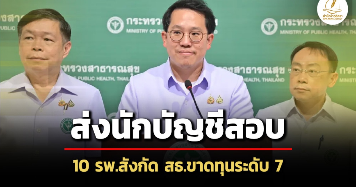 'พัฒนา'ส่งนักบัญชีเอกชนตรวจสอบ 10 รพ.สังกัด สธ. ขาดทุนระดับ 7 ด้าน ปลัดฯ เผย 3 สาเหตุหลักเงินติดลบ 'พื้นที่คนไข้น้อย-ค่ารักษาน้อยกว่าต้นทุน-การบริหาร'