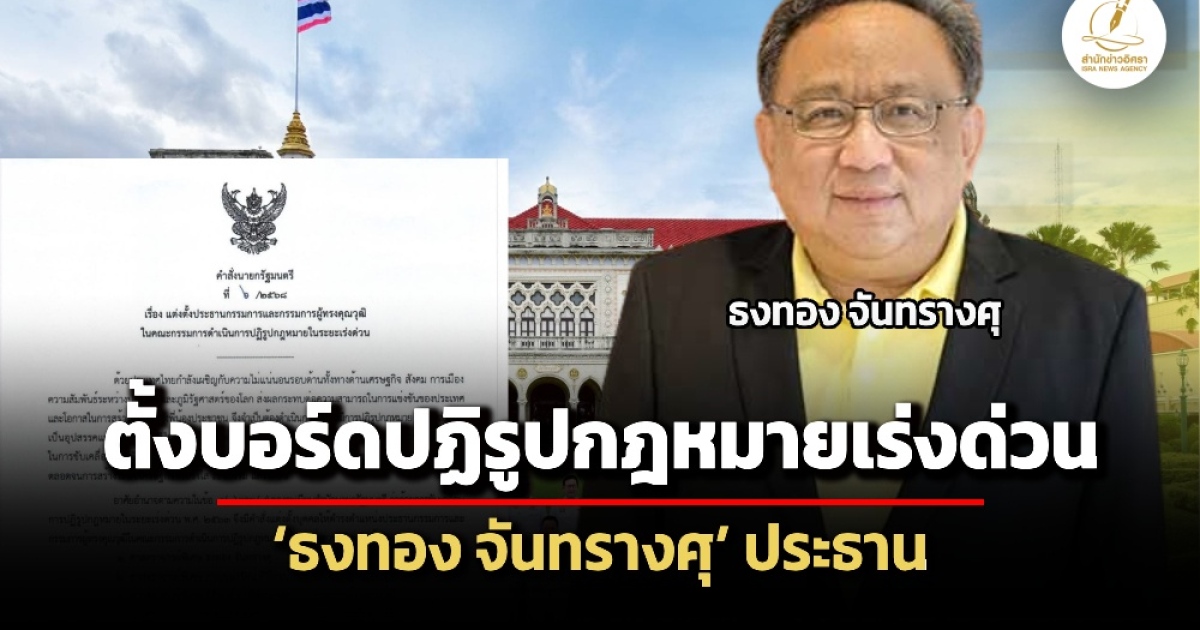 สำนักข่าวอิศรา (www.isranews.org) รายงานว่า วันที่ 21 ตุลาคม 2568 นายอนุทิน ชาญวีรกูล นายกรัฐมนตรีและรัฐมนตรีว่าการกระทรวงมหาดไทย ลงนามในคำสั่งนายกรัฐมนตรีที่ 1/2568 เรื่อง แต่งตั้งประธานกรรมการและกรรมการผู้ทรงคุณวุฒิในคณะกรรมการดำเนินการปฏิรูปกฎหมายในระยะยะเร่งด่วน มีรายละเอียดดังนี้