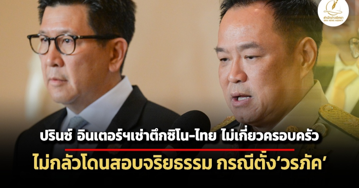 นายกฯแจงกรณี ‘ปรินซ์อินเตอร์ฯ’ เช่าตึกซิโน-ไทยเป็นสำนักงาน ชี้ไม่เกี่ยวครอบครัว ระบุถ้าพบว่าผู้เช่าผิดจริงก็ไม่ต่อสัญญา ส่วนกรณี ‘วรภัค’ ไม่กลัวถูกยื่นสอบจริยธรรม ด้าน ‘เอกนิติ’ ยันไม่กระทบการทำงานที่ ‘คลัง’ ก่อนแย้มนายกฯจ่อตั้งกรรมการสแกนเส้นเงิน