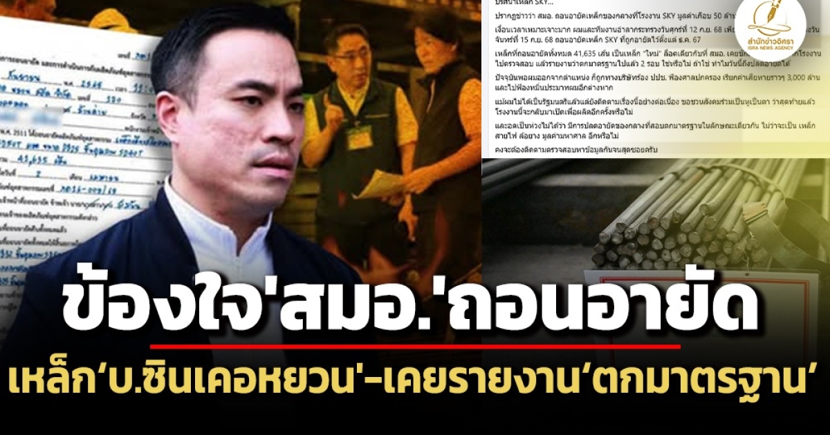 ‘อดีต รมว.อุตสาหกรรม’ ข้องใจ ‘สมอ.’ สั่งถอนอายัดเหล็กข้ออ้อย ‘บ.ซินเคอหยวน’ 4.1 หมื่นเส้น หลังชักเหล็กตัวอย่างไปตรวจสอบ แล้วรายงานว่า ‘ตกมาตรฐาน’ 2 รอบ