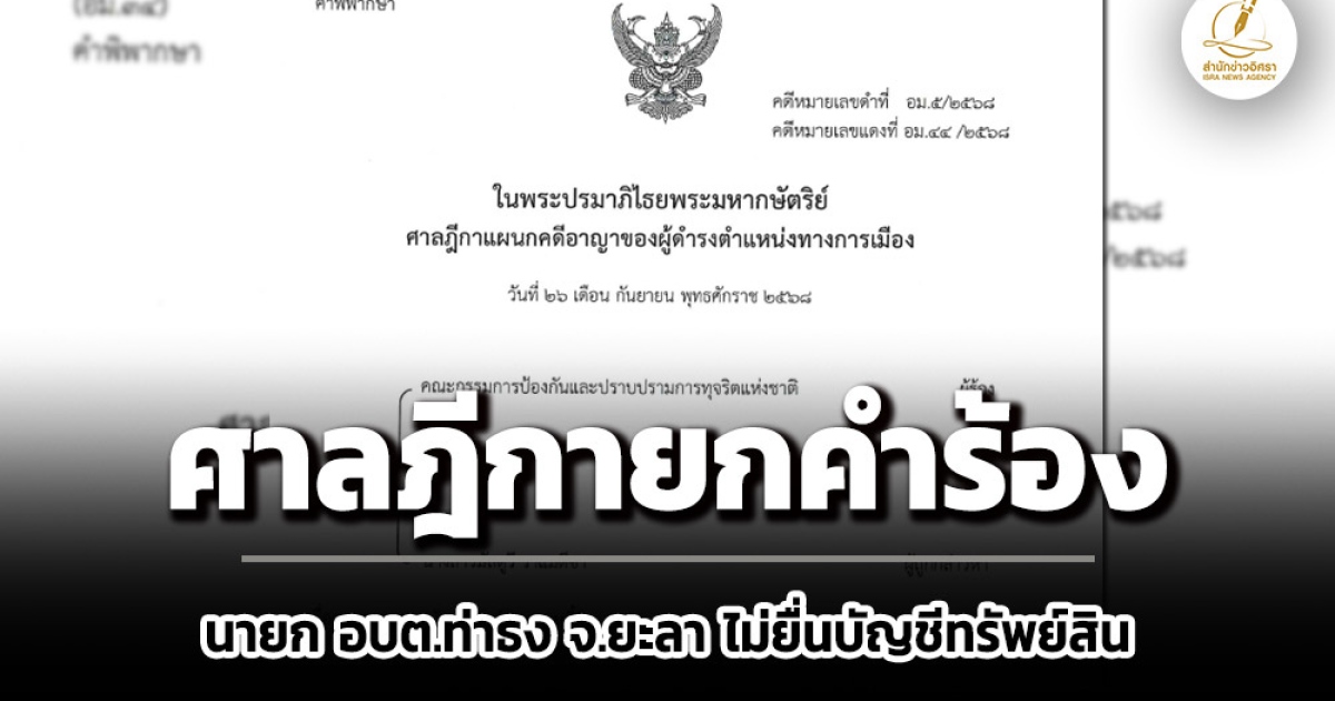 สำนักข่าวอิศรา (www.isranews.org) รายงานว่า วันที่ 26 กันยายน 2568 ศาลฎีกาแผนกคดีอาญาของผู้ดำรงตำแหน่งทางการเมืองพิพากษา ยกคำร้องคดี นางสาวมัสตูรี วาแมดีชา นายกองค์การบริหารส่วนตำบล (อบต.) ท่าธง อำเภอรามัน จังหวัดยะลา ผู้ถูกกล่าวหา จงใจไม่ยื่นบัญชีทรัพย์สินและหนี้สินและเอกสารประกอบต่อ คณะกรรมการป้องกันและปราบปรามการทุจริตแห่งชาติ (คณะกรรมการ ป.ป.ช.) ผู้ร้อง และมีพฤติการณ์อันควรเชื่อได้ว่ามีเจตนาไม่ แสดงที่มาแห่งทรัพย์สินหรือหนี้สินนั้น กรณีเข้ารับตำแหน่ง ข้อเท็จจริงฟังได้ว่า ผู้ถูกกล่าวหาจงใจไม่ยื่นบัญชีทรัพย์สินและหนี้สินและเอกสารประกอบต่อผู้ร้อง ภายในระยะเวลาที่กฎหมายกำหนด แต่ข้อเท็จจริงตามทางไต่สวนยังรับฟังไม่ได้ว่าผู้ถูกกล่าวหามีพฤติการณ์อันควรเชื่อได้ว่า มีเจตนาไม่แสดงที่มาแห่งทรัพย์สินหรือหนี้สิน การกระทำของผู้ถูกกล่าวหาจึงไม่เป็นความผิดตามคำร้อง