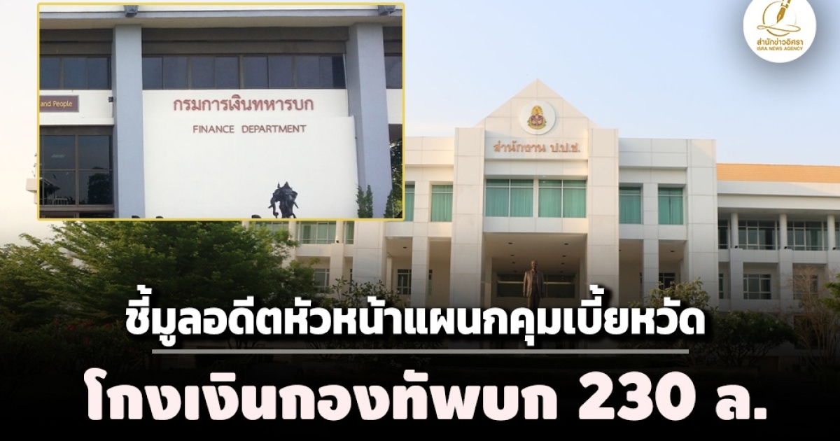 ป.ป.ช.ชี้มูลอดีต ขรก.หัวหน้าแผนกคุมเบี้ยหวัด กรมการเงิน ทบ.ปลอมแปลงเลขบัญชีผู้รับเบี้ยหวัดให้เป็นชื่อตน-อดีต ทร.คู่สมรส รับโอนเงินไม่โปร่งใสร่วม 572 ครั้ง เพื่อเอาเงินไปใช้จ่ายส่วนตัว 230 ล้าน