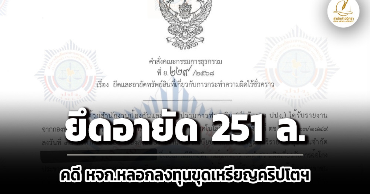 ปปง.ตามยึดอายัดทรัพย์ 264 รายการ 251.1 ล้าน คดี หจก.โฆษณาผ่านเฟซบุ๊ก 'กิติกร' หลอกลงทุนขุดเหรียญคริปโตฯให้ผลตอบแทนสูง หลงเชื่อ 3,000 คน เสียหาย 2.6 พันล้าน