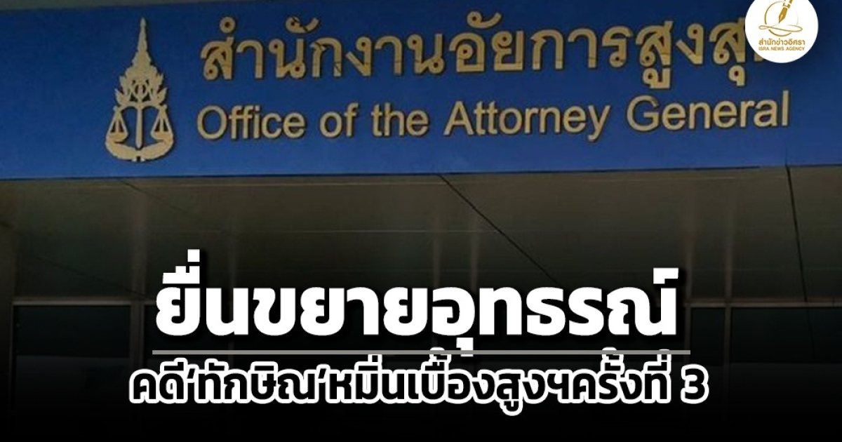 ‘อัยการ’ ยื่นขยายอุทธรณ์ คดี ‘ทักษิณ’ หมิ่นเบื้องสูงฯ เป็นครั้งที่ 3 กันเหนียว หลังความเห็นให้อุทธรณ์ของ ‘อสส.’ ส่งมา 'อัยการ' กองคดีอาญา เเล้ว เเต่อยู่ระหว่างจัดทำ ‘ร่างคำอุทธรณ์’