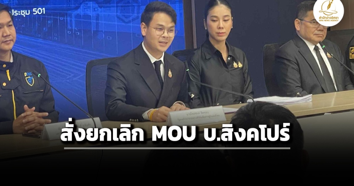 ‘ไชยชนก’ สั่งยกเลิก MOU บ.สิงคโปร์ หลังพบข้อพิรุธหลายประการ รวมถึงโยงการพนันที่กฎหมายยังไม่รองรับ ยอมรับอาจมีบุคคลถูกสหรัฐฯ คว่ำบาตรเกี่ยว MOU เพราะผู้ถือหุ้นใน บ. TIDC 51% เกี่ยวข้องธนาคาร BIC