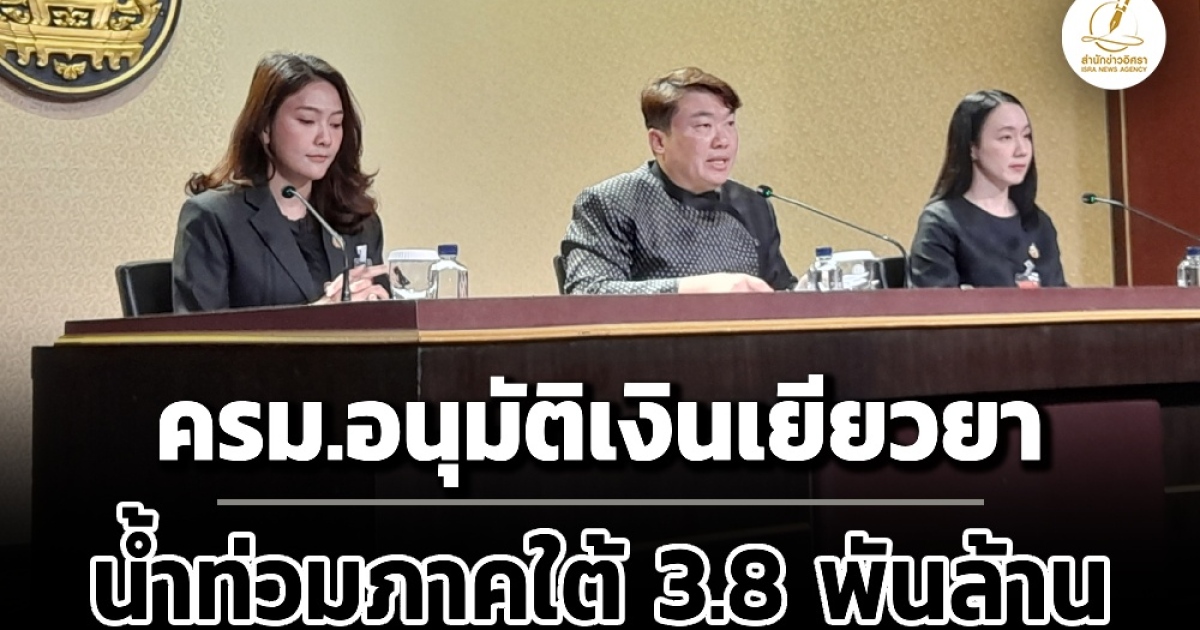 ครม.อนุมัติเงินเยียวยาน้ำท่วมภาคใต้ 3.8 พันล.-ครอบคลุม 7 จังหวัด ตรัง-นครศรีธรรมราช-นราธิวาส-ปัตตานี-พัทลุง-สงขลา-ลพบุรี-แจงถ้าปริมาณน้ำไม่เพิ่มคลี่คลายใน 5 วัน