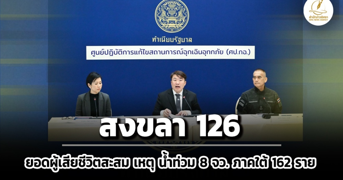 ศูนย์ปฏิบัติการแก้ไขสถานการณ์ฉุกเฉินอุทกภัย แถลง ยอดผู้เสียชีวิตสะสม เหตุน้ำท่วม 8 จังหวัดภาคใต้ รวม 162 ราย - สงขลา 'จังหวัดเดียว' 126 ราย 'อนุทิน' หอบ 'นายกสมาคมธนาคาร' - รักษาการผอ.แบงก์ออมสิน ลงพื้นที่ 30 พ.ย.68