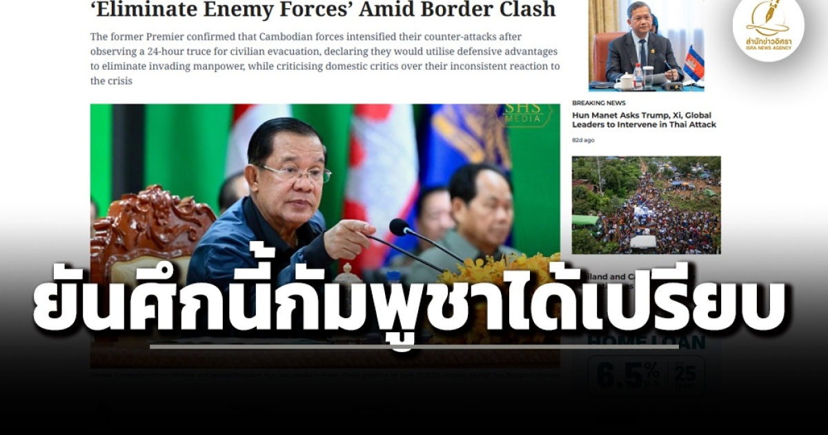 ส่วนความเคลื่อนไหวของนายฮุน เซน ประธานวุฒิสภาและอดีตนายกรัฐมตรีกัมพูชา นายฮุน เซนได้ออกแถลงการณ์ที่มีถ้อยคำรุนแรงผ่านโซเชียลมีเดีย ท้าทายผู้นำกองทัพไทยต่อสาธารณะ และให้คำมั่นว่าจะตอบโต้อย่างรุนแรง หลังจากที่กัมพูชายุติความอดทนในการให้คำมั่นหยุดยิงเป็นเวลา 24 ชั่วโมง