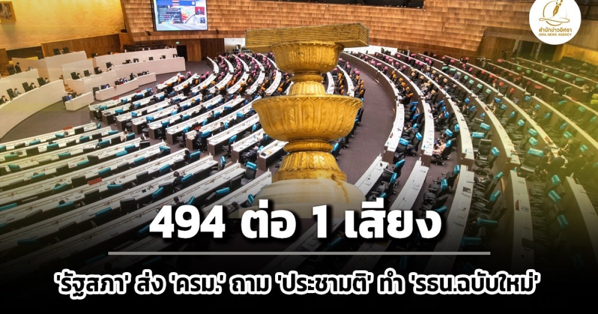 ที่ประชุมร่วมรัฐสภามีมติเห็นชอบ 494 ต่อ 1 เสียง ให้ 'ครม.' ดำเนินการ 'ประชามติ' จัดทำ 'รัฐธรรมนูญฉบับใหม่'