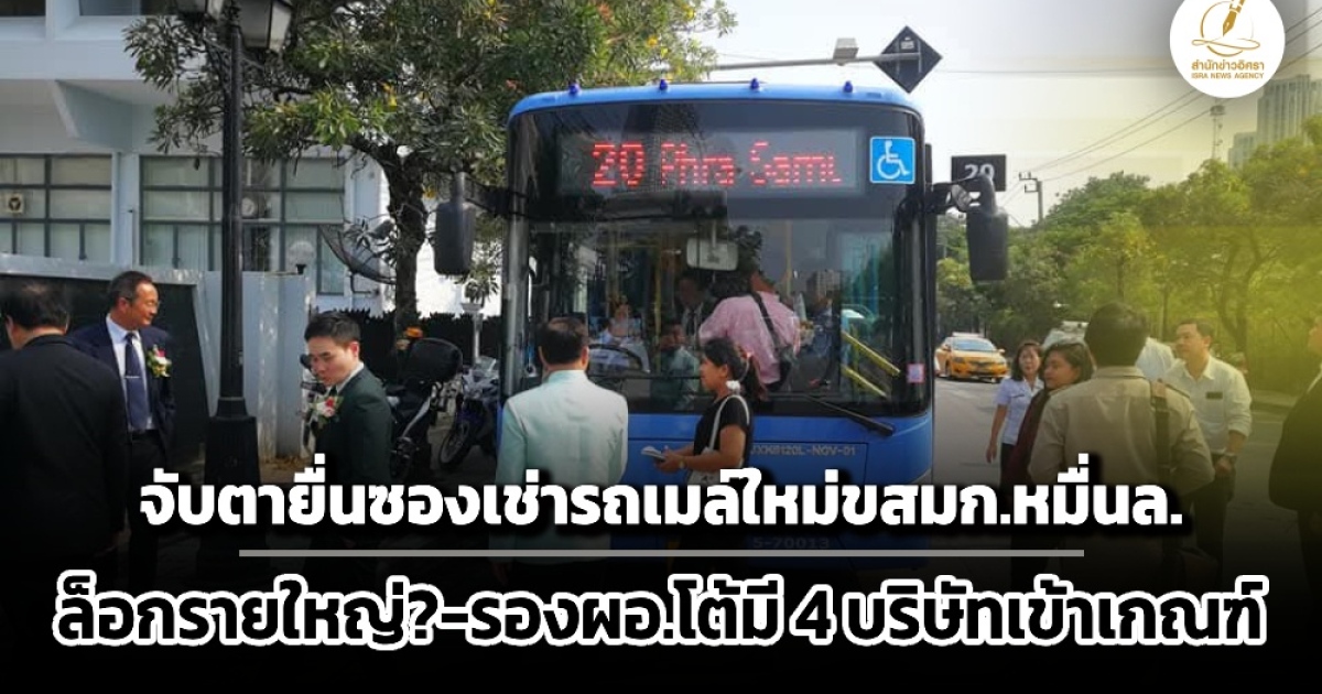 สำนักข่าวอิศรา (www.isranews.org) รายงานว่า วันที่ 14 ธันวาคม 2568 ผู้สื่อข่าวรายงานว่า ในวันที่ 23 ธ.ค.นี้ องค์การขนส่งมวลชนกรุงเทพ (ขสมก.) มีกำหนดให้ยื่นเสนอราคาทางระบบจัดซื้อจัดจ้างภาครัฐ หรือ e-bidding โครงการเช่ารถโดยสารประจำทางปรับอากาศพลังงานสะอาด (EV) จำนวน 1,520 คัน และระบบอัดประจุไฟฟ้า ระยะเวลาการเช่า 7 ปี กรอบวงเงินงบประมาณ 15,355.6 ล้านบาท