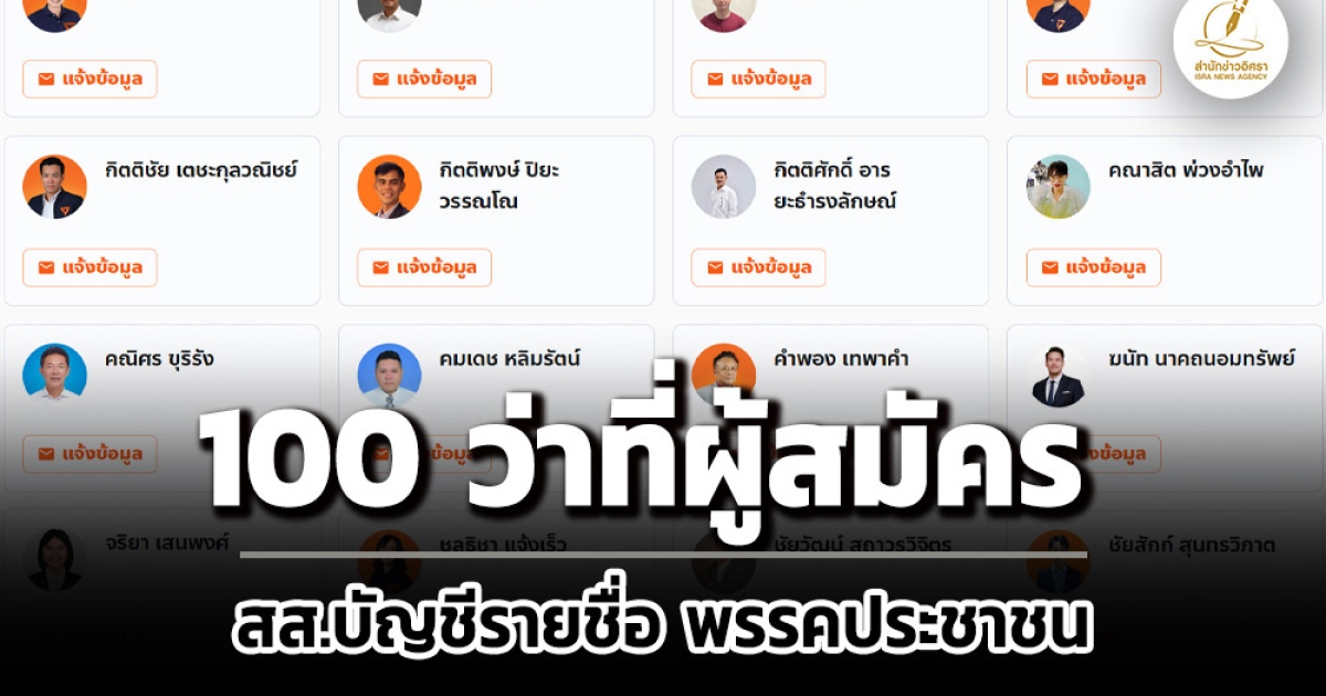 สำนักข่าวอิศรา (www.isranews.org) รายงานว่าสำหรับรายชื่อ ว่าที่ผู้สมัคร สส.บัญชีรายชื่อ 100 คณะ ขณะนี้อยู่ระหว่างเปิดรับฟังความคิดเห็น เพื่อจัดลำดับ ต่อไปนี้ เป็นรายชื่อ เรียงตามตัวอักษร ประกอบด้วย