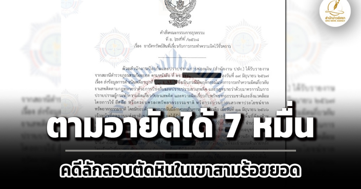 ปปง.ตามอายัดเงินได้ 7 หมื่นบาท คดีกลุ่มบุคคลลักลอบตัดหินในอุทยานฯเขาสามร้อยยอดขายเป็นเครื่องประดับนักท่องเที่ยวพัวพันคดียาเสพติดรายใหญ่