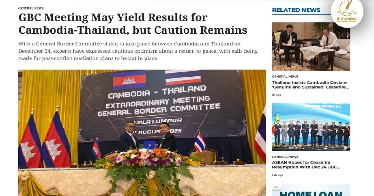 สำนักข่าวอิศรา (www.isranews.org) รายงานข่าวสถานการณ์ชายแดนไทยและกัมพูชา อ้างอิงข่าวจากสำนักข่าว KiriPost ของกัมพูชาว่ากัมพูชาและไทยกำลังเตรียมตัวสำหรับการประชุมคณะกรรมการชายแดนทั่วไป (GBC) ที่กำลังจะมีขึ้น โดยมีเป้าหมายเพื่อยุติการปะทะที่เกิดขึ้นใหม่