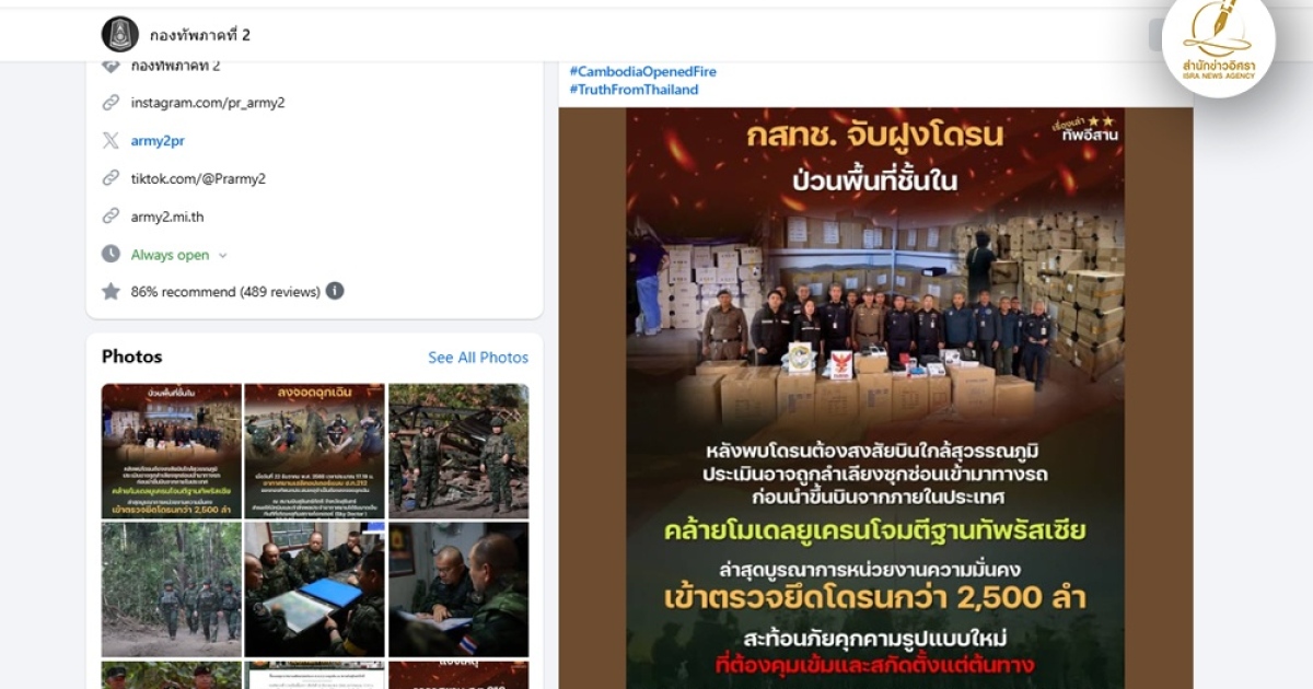 สำนักข่าวอิศรา (www.isranews.org) รายงานข่าวสถานการณ์ความมั่นคงอ้างอิงจากเฟซบุ๊กกองทัพภาคที่ 2 ว่า สำนักงานคณะกรรมการกิจการกระจายเสียง กิจการโทรทัศน์ และกิจการโทรคมนาคมแห่งชาติ หรือ กสทช. พบโดรนต้อนสงสัยขึ้นบินใกล้สุวรรณภูมิ
