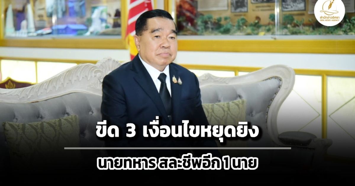 ‘บิ๊กเล็ก’วาง 3 เงื่อนไขของฝ่ายไทยบนโต๊ะ GBC กับกัมพูชา ‘หยุดยิงอย่างจริงใจ-ต้องต่อเนื่อง-ปล่อยตัวทหารกัมพูชา 18 นายคืนมาตุภูมิ’ ขณะที่กองทัพภาค 1 รายงานทหารไทยเสียชีวิตอีก 1 นาย