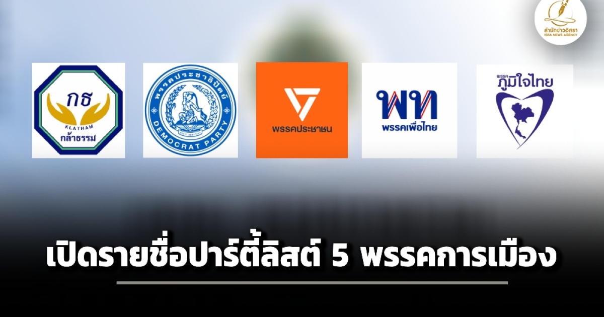 เปิดรายชื่อแคนดิเดต สส.บัญชีรายชื่อ 5 พรรคการเมือง 'ประชาธิปัตย์-เพื่อไทย-ภูมิใจไทย-กล้าธรรม-ประชาชน'