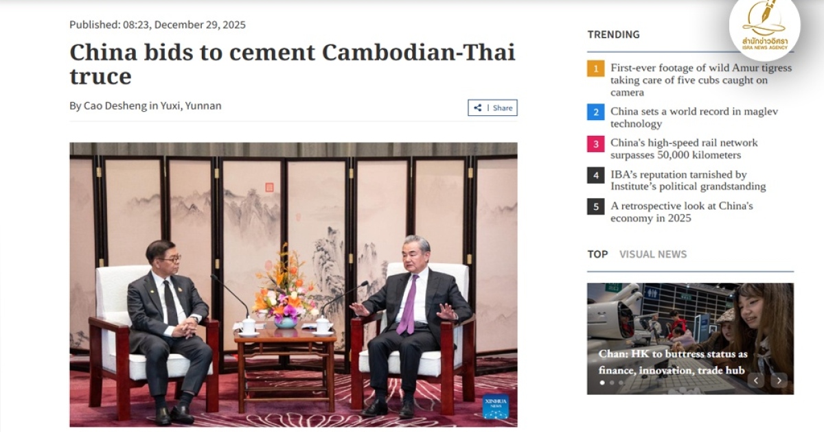 สำนักข่่าวอิศรา (www.isranews.org) รายงานข่าวการเจรจาระหว่างรัฐมนตตรีต่างประเทศไทย,รัฐมนตรีต่างประเทศกัมพูชา แะรัฐมนตรีต่างประเทศจีน ที่มณฑลยูนนาน ในประเด็นเกี่ยวกับข้อตกลงหยุดยิงที่บรรลุผลใหม่