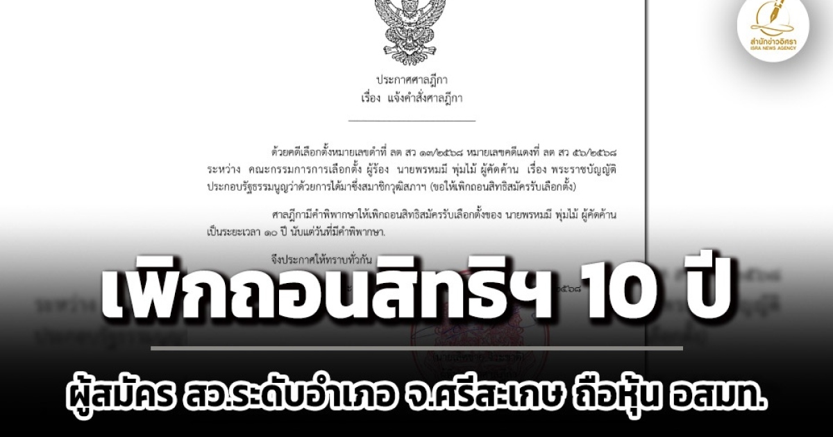 - ศาลฎีกาสั่งเพิกถอนสิทธิฯ 10 ปี ผู้ได้รับเลือก สว.ระดับอำเภอ จ.ศรีสะเกษ มีประวัติยักยอกทรัพย์ (2)