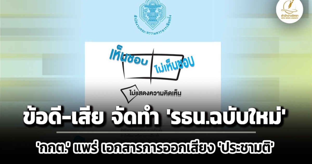 สำนักข่าวอิศรา (www.isranews.org) รายงานว่า เมื่อเร็วๆ นี้ สำนักงานคณะกรรมการการเลือกตั้ง (กกต.) ได้เผยแพร่เอกสาร ข้อมูลเกี่ยวกับการออกเสียงประชามติ เพื่อให้ความเห็นชอบการจัดทำรัฐธรรมนูญฉบับใหม่ เพื่อให้ประชาชนผู้มีสิทธิออกเสียงประชามติ รวมทั้งหน่วยงานที่เกี่ยวข้อง ได้ทำความเข้าใจเกี่ยวกับชื่อเรื่องที่จะจัดทำประชามติ เหตุผลความจำเป็นที่จะต้องจัดให้มีการทำประชามติ สาระสำคัญ ขั้นตอน และระระยะเวลาในการดำเนินกิจการในเรื่องที่ทำประชามติ ประมาณการค่าใช้จ่ายและที่มาของงบประมาณที่จะนำมาใช้จ่ายสำหรับกิจการในเรื่องที่ทำประชามติ และประโยชน์ได้เสียที่อาจเกิดขึ้นกับประเทศชาติ ท้องถิ่น หรือประชาชน รวมทั้งมาตรการป้องกัน แก้ไข หรือเยียวยาความเดือดร้อน หรือความเสียหายที่เกิดขึ้นจากการดำเนินการพร้อมสรุปเปรียบเทียบข้อดีข้อเสีย ทั้งนี้ วันที่ 8 ก.พ.69 เป็นวันออกเสียงประชามติ