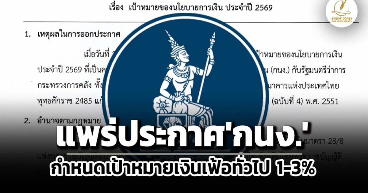 อ่านฉบับเต็ม : ประกาศคณะกรรมการนโยบายการเงิน เรื่อง เป้าหมายของนโยบายการเงิน ประจำปี 2569