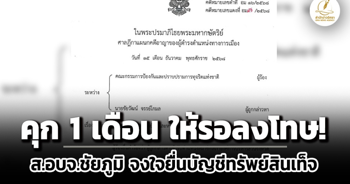 - ศาลฎีกาฯสั่งจำคุก 1 เดือน -รอลงโทษ รองนายกเทศฯ ต.โพธิ์ชัย ร้อยเอ็ด ยื่นบัญชีฯเท็จ